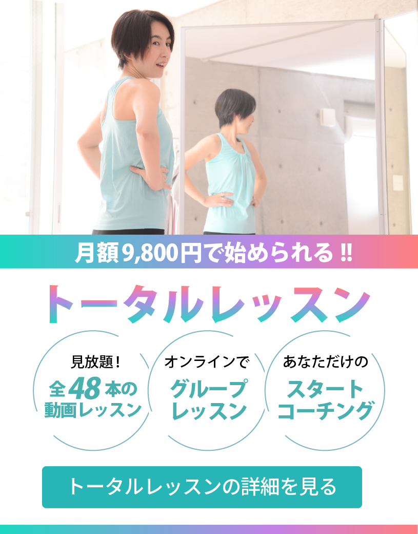 遠くて、スタジオには通えない。自分の空き時間にできたらいいな… こんな風に思うことありませんか??通常レッスンと変わらない全40本以上ある動画講座で綺麗な姿勢を取り戻しましょう。
