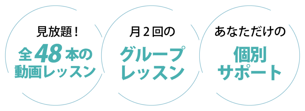 すべてのプランに「48本の動画レッスン」「LINEサポート」「スタートコーチング」が含まれます。